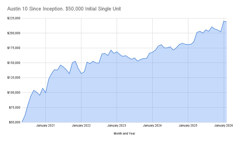 Austin 10 Portfolio without ES. $45,000 unit size. Performance per unit 2024 to Feb 2026.